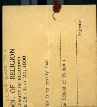 small postage stamp size, photo "framed" with straw or grass [?], red thread holding the frame together and hanger; small image : cdv studio bust portrait of a man, 3/4 pose, facing viewer's left; man has balding head, goatee and moustache; wearing double-breasted uniform frock coat, buttoned, with rank insignia on collar; handwritten on obverse, "Gen. Joseph E. Johnston;" paper on which image is 'hung' appearsto be from the Registrar's office at the University of Richmond, dated 1930; stamp of "Published by E. & H. T. Anthony, 501 Broadway, New York, Manufacturers of the best Photographic Albums" visible on reverse of image |